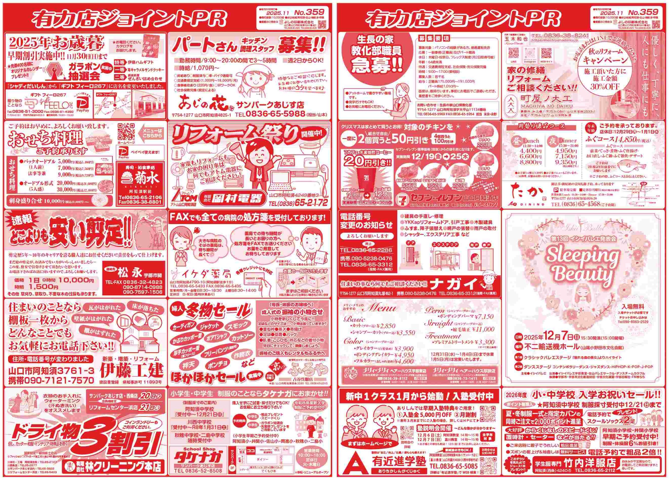 弊社で毎月20日に発行している新聞折込広告、ジョイントPRの11月号を発行しました。 お得な情報満載…