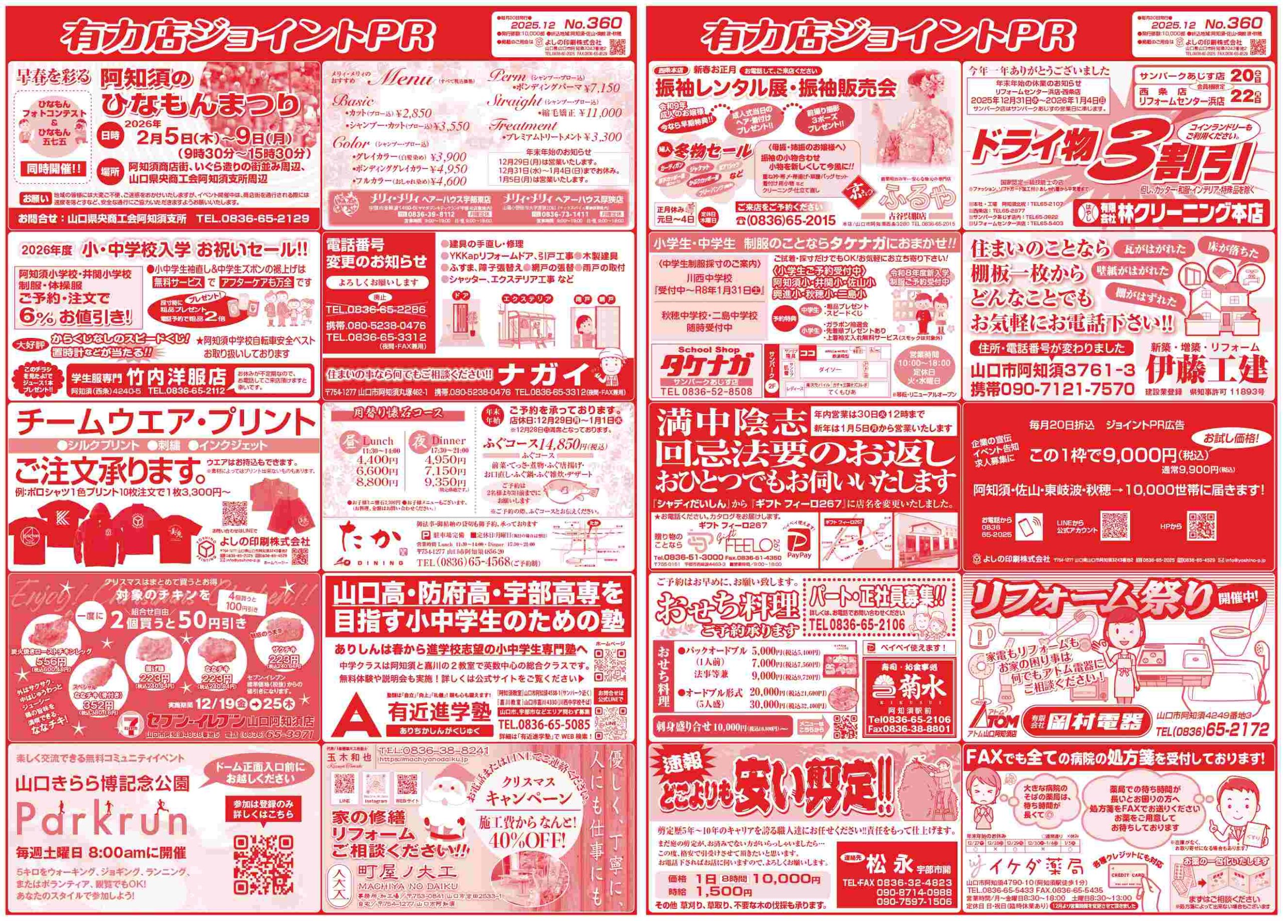 弊社で毎月20日に発行している新聞折込広告、ジョイントPRの12月号を発行しました。 お得な情報満載…