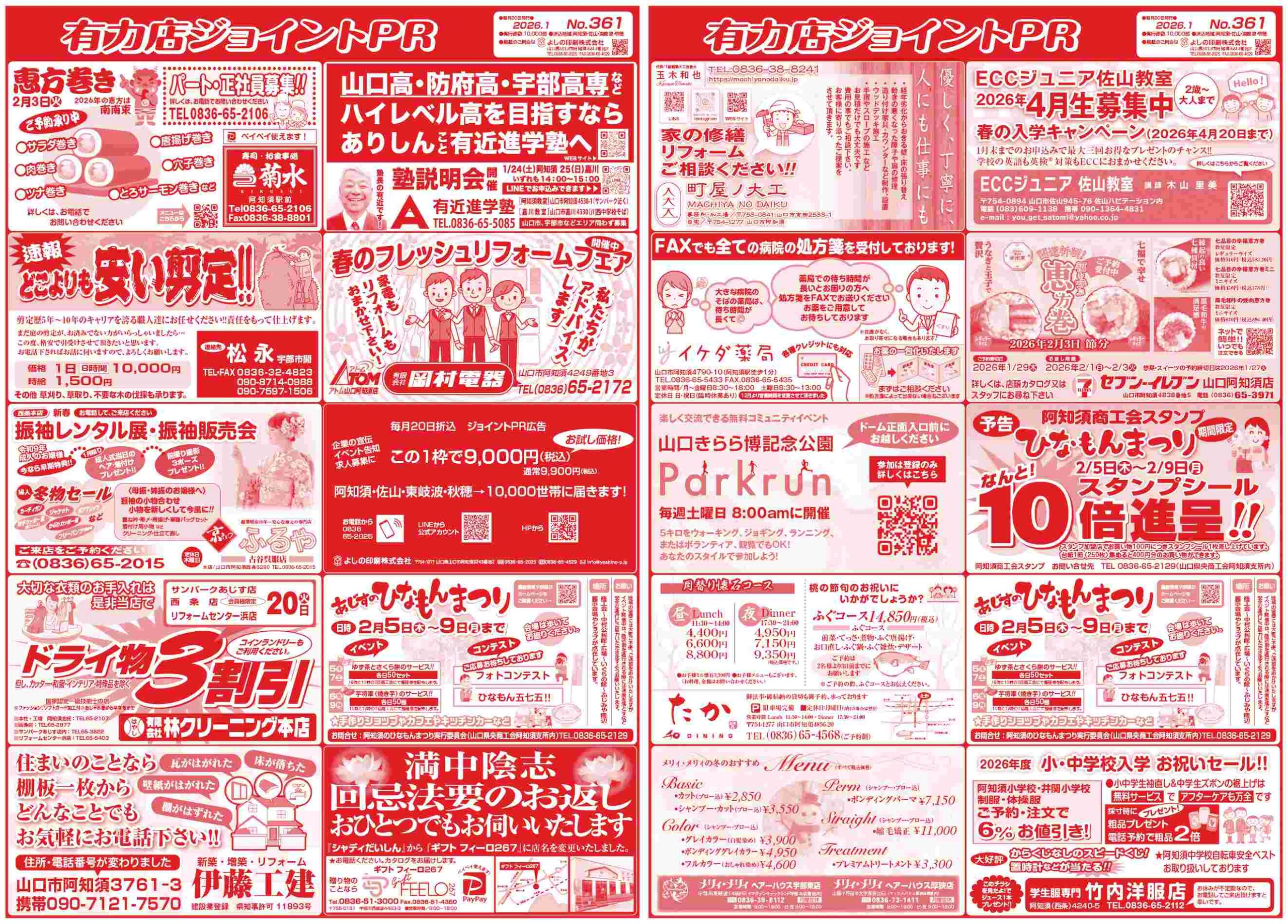 弊社で毎月20日に発行している新聞折込広告、ジョイントPRの1月号を発行しました。 お得な情報満載で…
