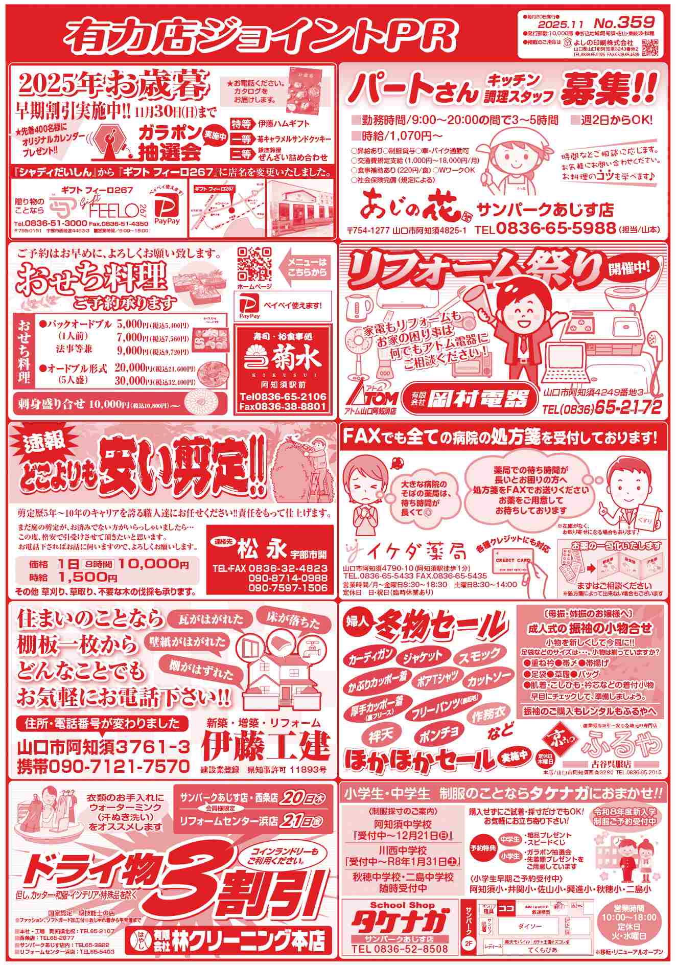 弊社で毎月20日に発行している新聞折込広告、ジョイントPRの11月号を発行しました。