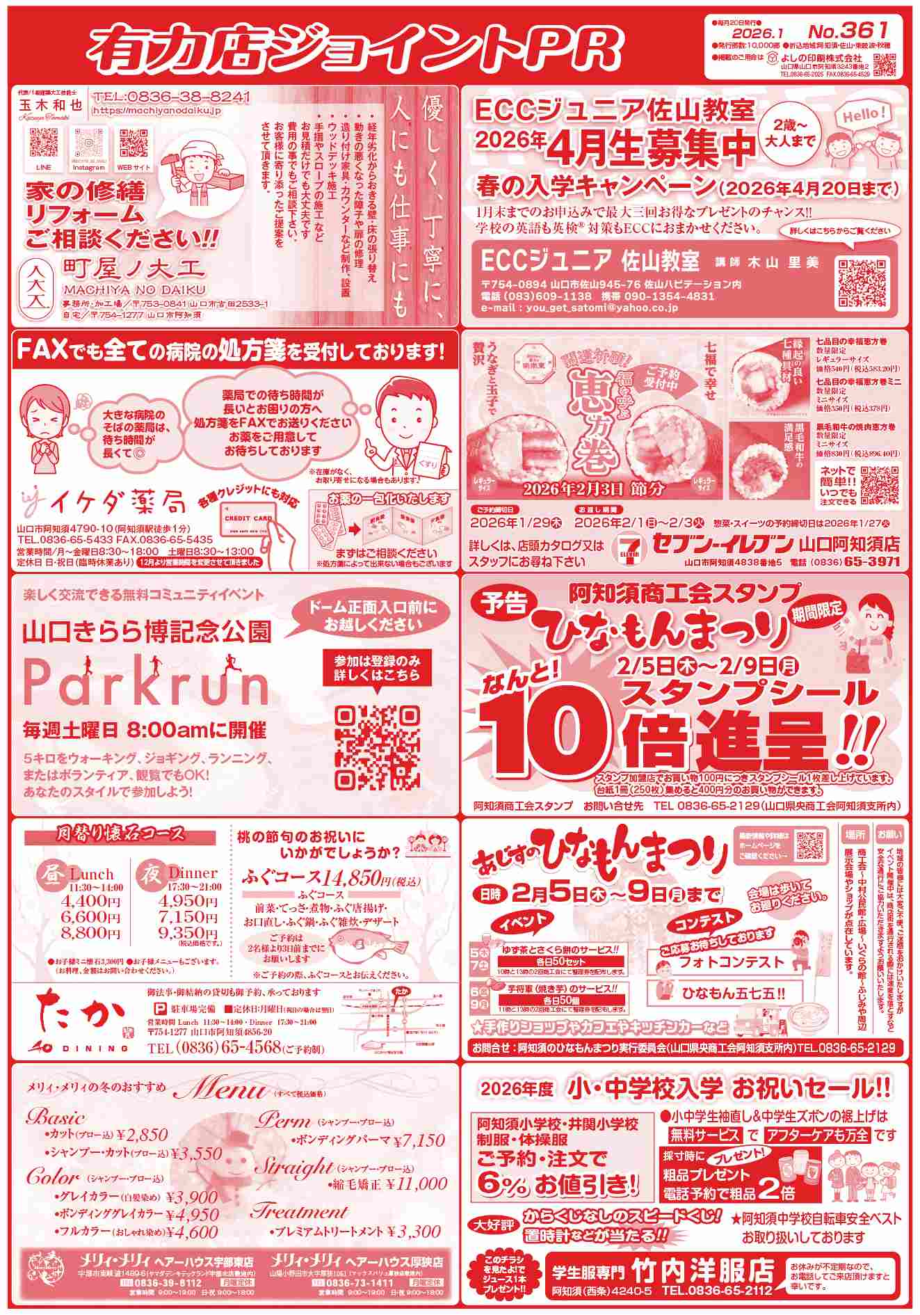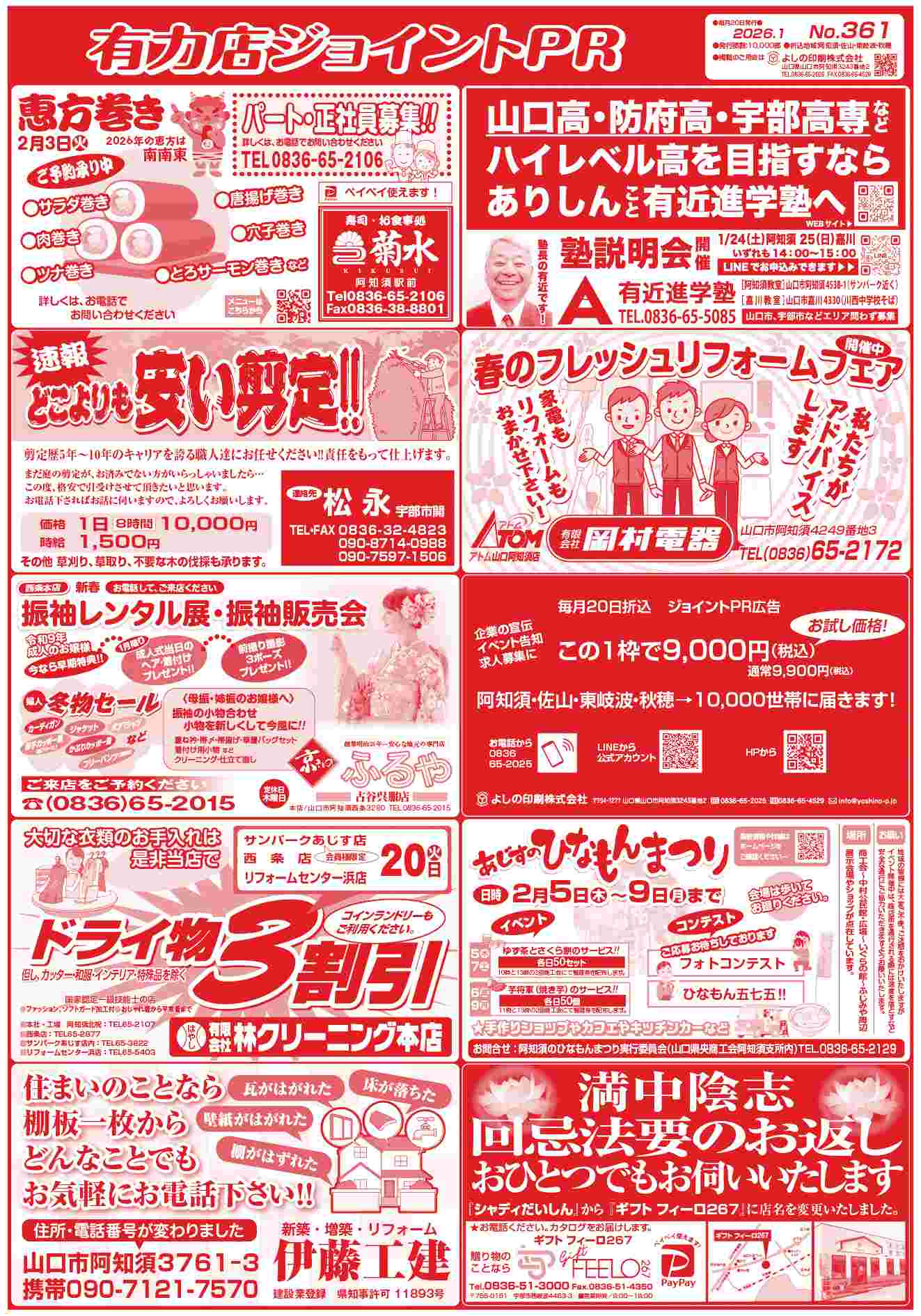 弊社で毎月20日に発行している新聞折込広告、ジョイントPRの1月号を発行しました。